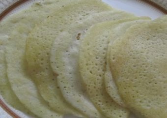To make the batter, combine rice flour, black gram, warm water, and salt. For several hours, the batter is covered and left to ferment. After that, the batter is placed into a skillet to make round flat cakes.