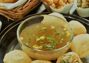 Serving – Make a little opening on one side of the puri. Put in the squashed potato-onion-peas filling. Dunk the puri into the tart pani and relish the taste.