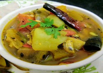 Santula is a vegetable dish from Odisha, India’s easternmost state. It can be fried or boiled (bhaja santula) (sijha santula). Potatoes, brinjal, papaya, and tomato are among the ingredients, which are boiled together before being fried in oil with sliced onion, panch phoran, and green chilies.